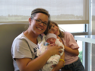 I called my sis at 4am and told her Dawson would be arriving later that morning but to sleep a few more hours. She threw my suggestions out the window and came straight over. Here she is with big sister Macy and lil D soon after delivery.
